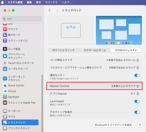 ジェスチャーはシステム環境設定→トラックパッドで有効になっているか確認しましょう。