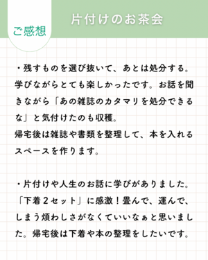 ・片付けや人生のお話に学びがありました。